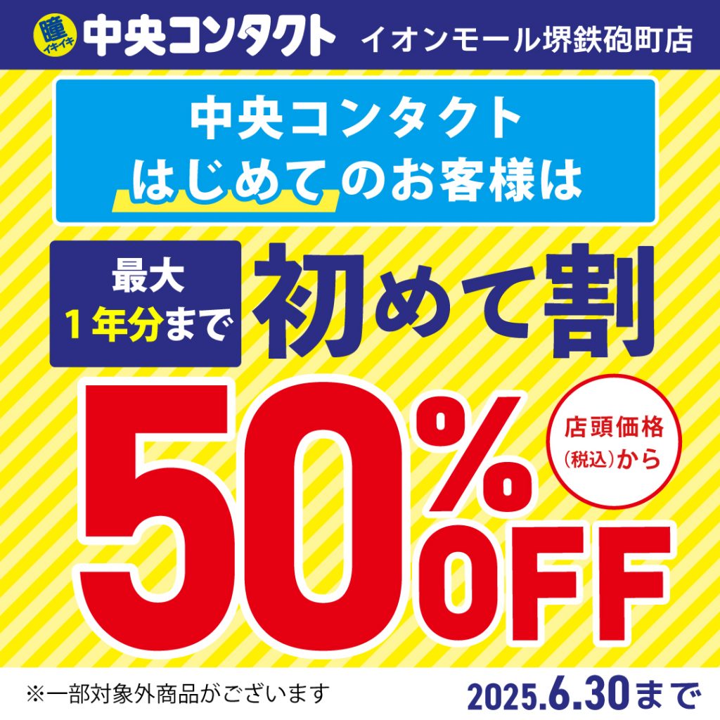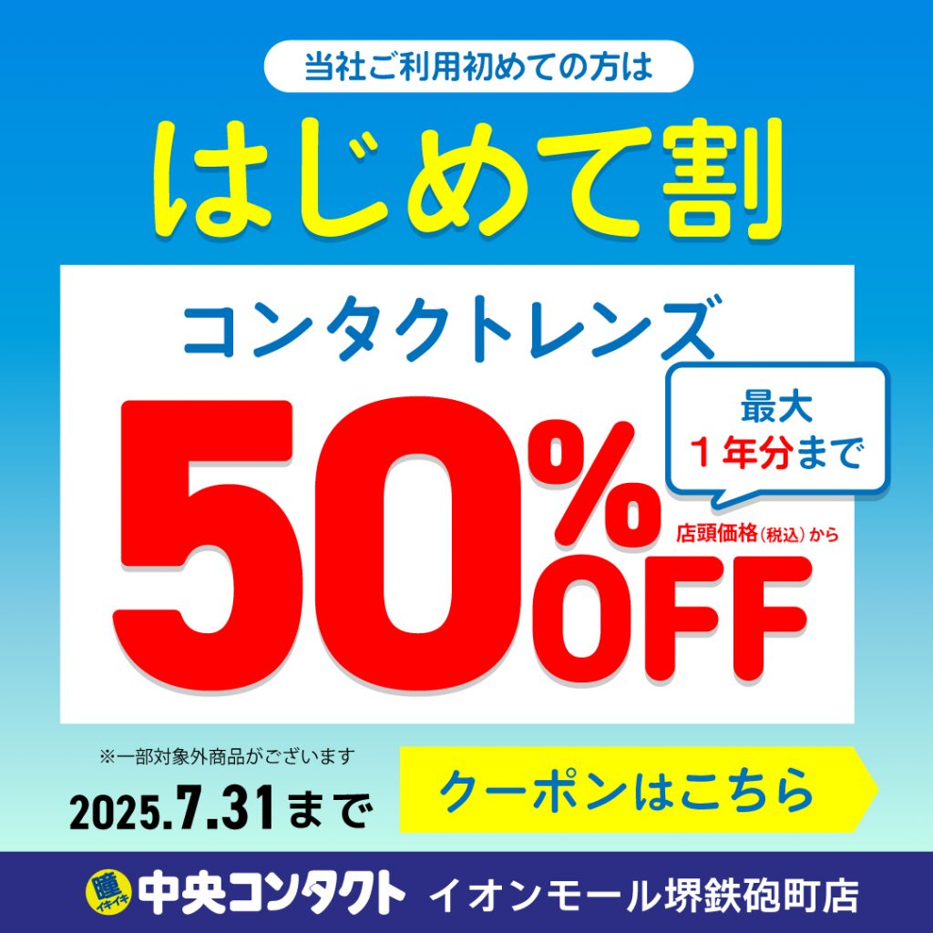 - 店頭価格が1箱3,300円(税込)以上のコンタクトレンズが50%OFF