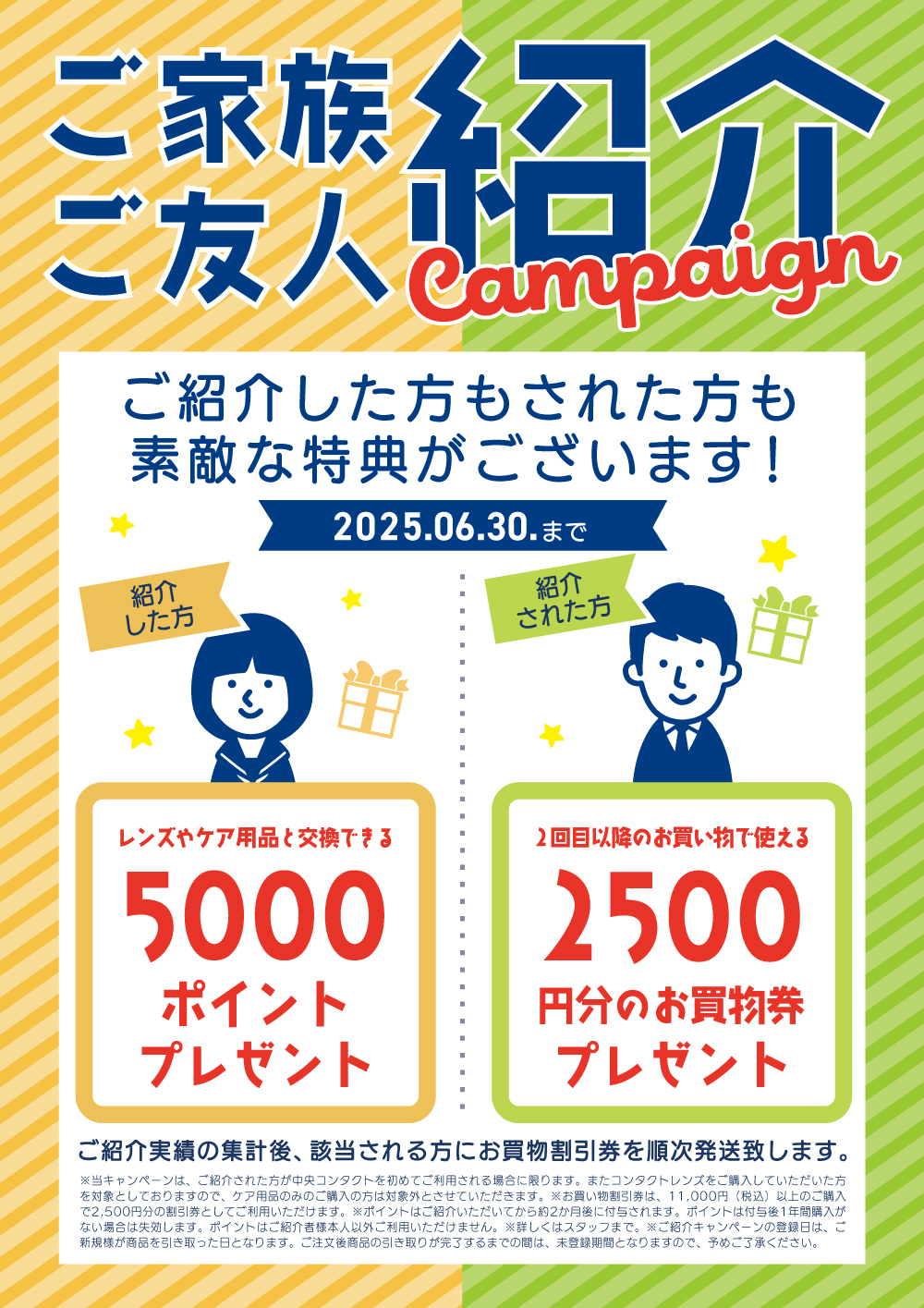 - ・当キャンペーンはご紹介された方が中央コンタクトを初めてご利用される場合に限ります。