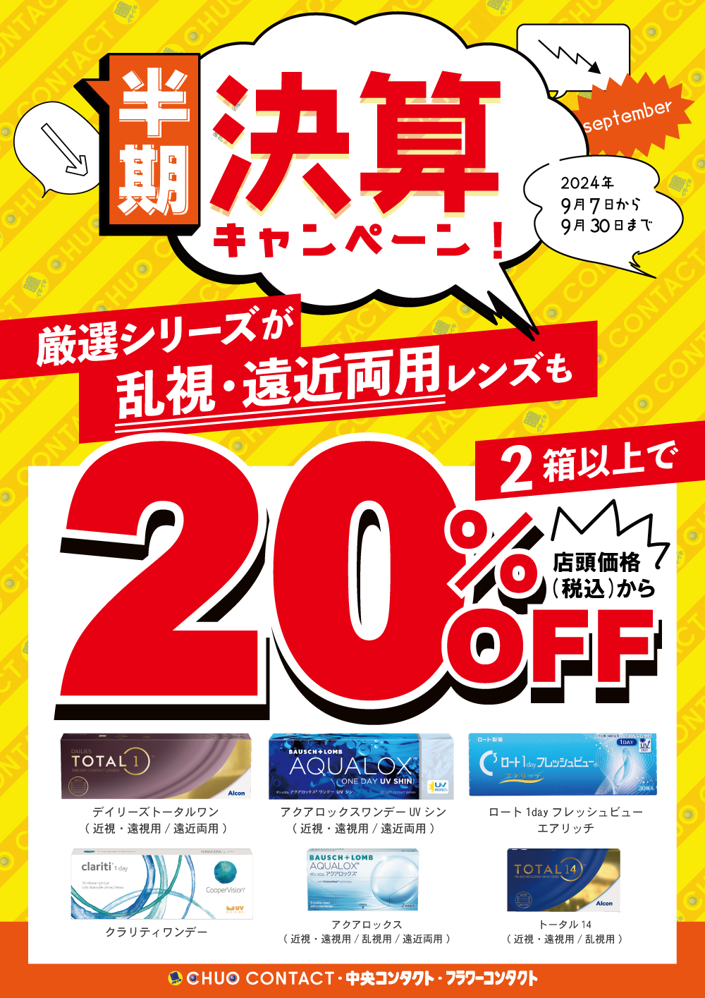 対象レンズを2箱以上ご購入で店頭価格(税込)から20%OFF!