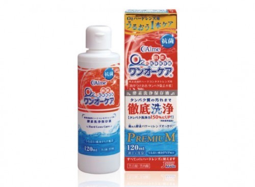 アイミーの「ワンオーケア」は、1本でレンズの洗浄と保存、タンパク汚れを取り除くことができる洗浄液です。