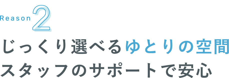 ゆっくりコンタクト選びをしていただけるよう、どの店舗もゆとりのある空間づくりを心がけています。また、専門スタッフが親身になって相談に乗らせていただきます。