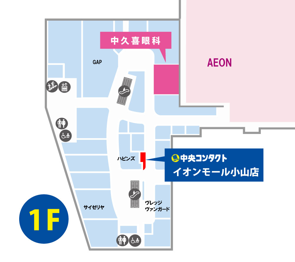 〒323-0806 栃木県小山市中久喜1467-1 イオンモール小山1F