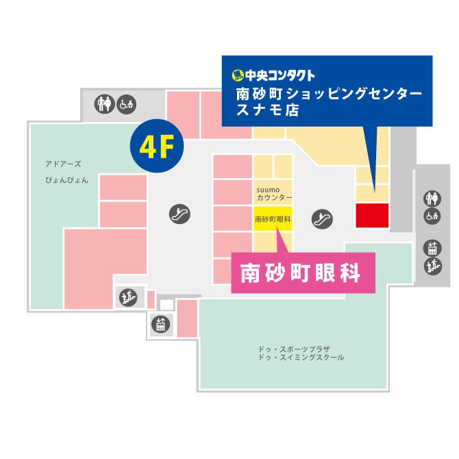 又、バラエティー豊富なレストラン街やフードコートがございますので、ショッピングやお食事を楽しみながらお気軽にコンタクトレンズをお求めいただけます。