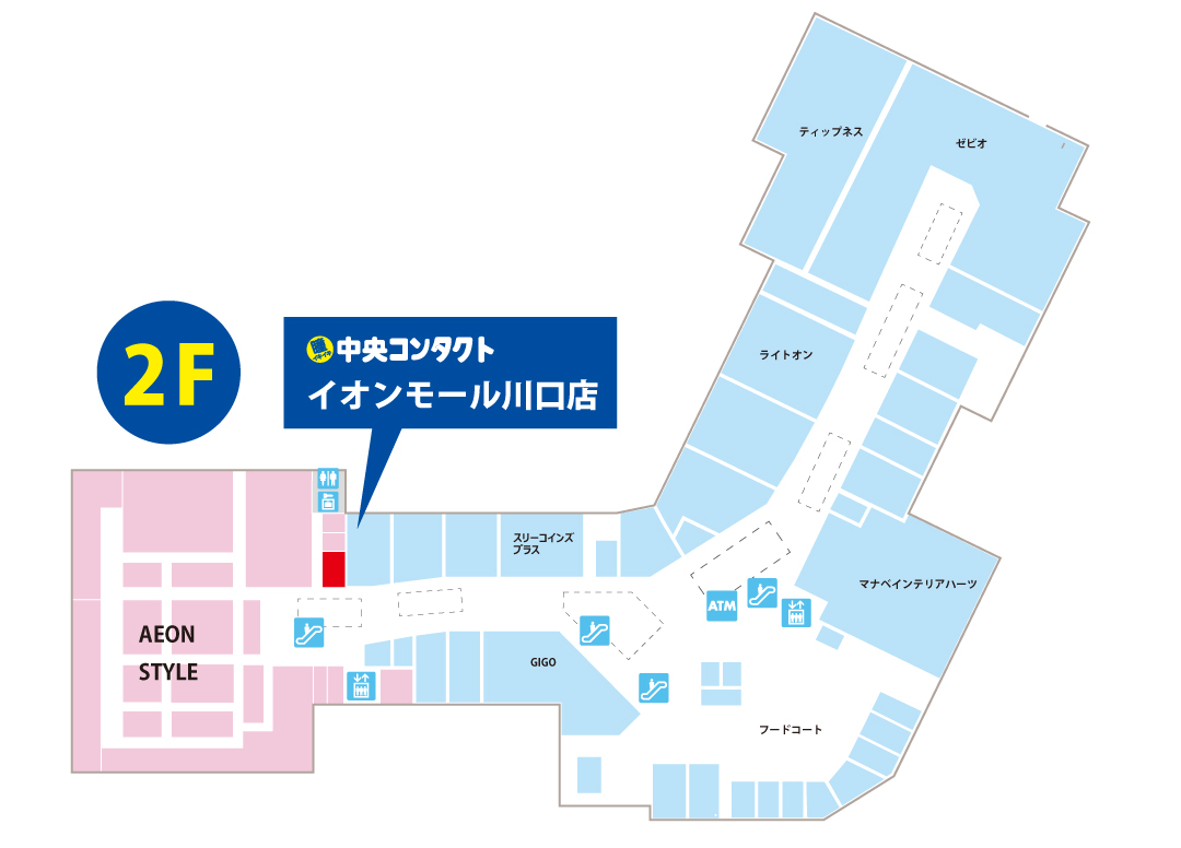 当店は、埼玉県川口市にあるショッピングモール、イオンモール川口の2階にございます。