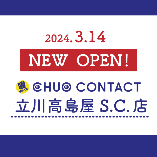 中央コンタクト立川高島屋S.C.店がオープン致しました! オープンを記念してお得なセールやキャンペーンを多数実施します! 是非この機会にご来店くださいませ♪ 立川高島屋店の店舗ページはこちら