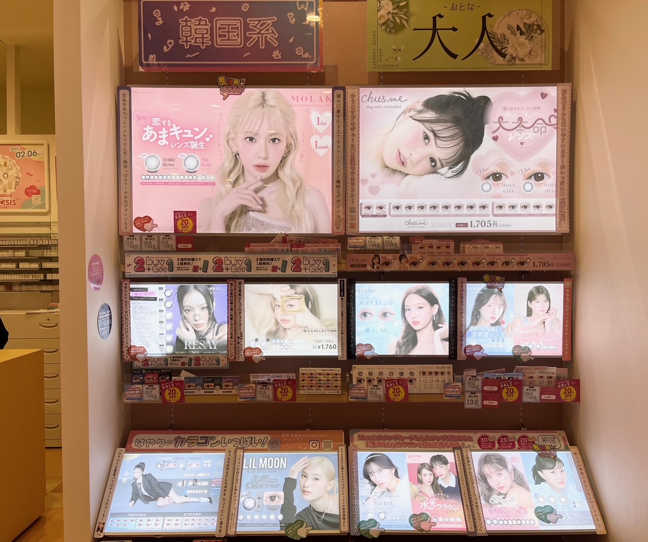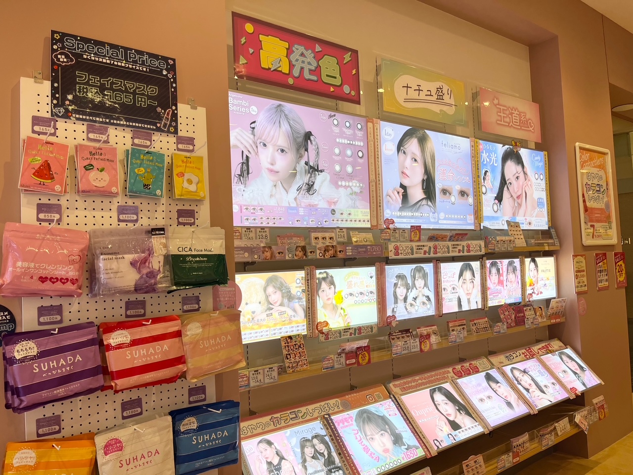 はじめての方も安心して選べるよう、スタッフが丁寧にご案内。学校・お仕事帰りやお買い物のついでに立ち寄りやすく、スピーディーなお渡しにも対応します。なりたい雰囲気に合わせて、“自分らしい瞳”を見つけられるお店です。