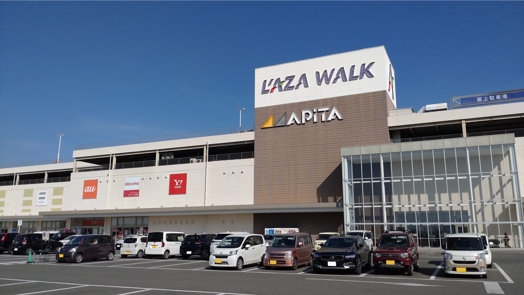 ラザウォーク甲斐双葉は国道20号沿いにあり甲府市や韮崎市・南アルプス市からのアクセスも良いためご家族連れにも人気のショッピングセンターです。