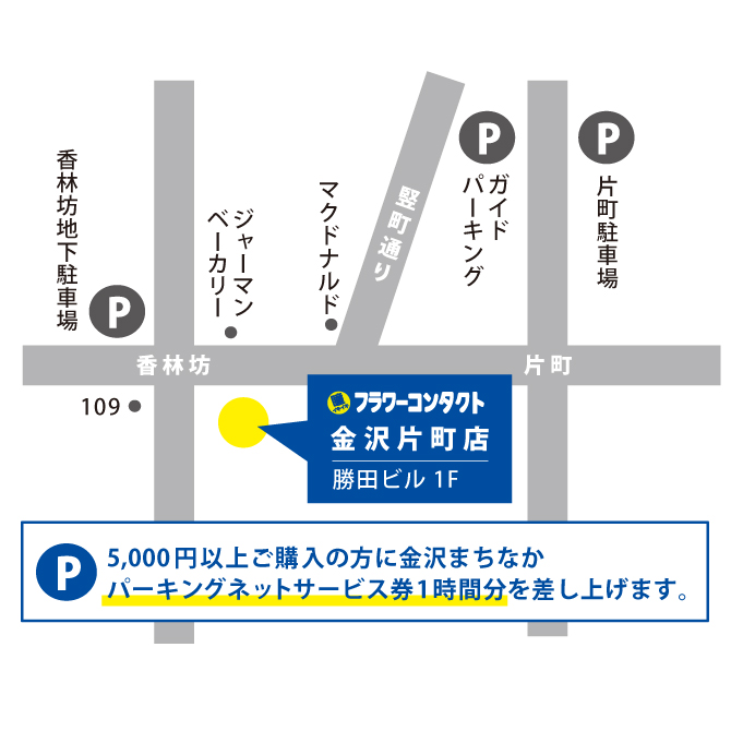近隣では「グランドパーキング」「香林坊地下駐車場」がございます。