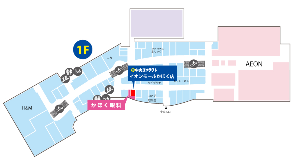 【中央コンタクトイオンモールかほく店】は、石川県かほく市の大型ショッピングモール【イオンモールかほく】の1階にございます。