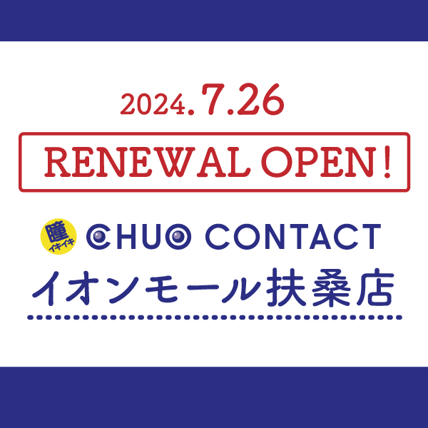 7/26(金)よりリニューアルオープンを記念してリニューアルセールも開催いたします!是非この機会にお越しください! リニューアルオープン キャンペーン期間:2024/7/26~8/31まで 中央コンタクト イオンモール扶…