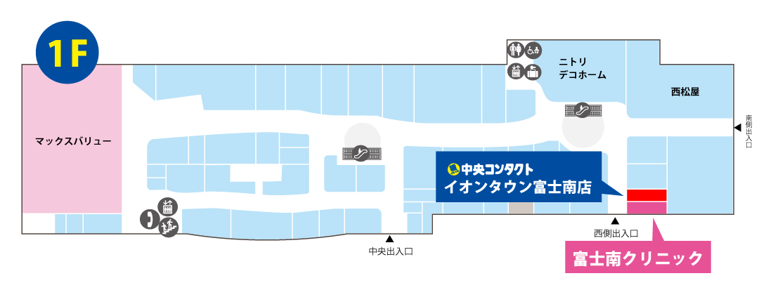 当店は、イオンタウン富士南1Fの南西入口にある『富士南クリニック』のとなりにございます。