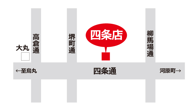 四条通りへのお買物ついでや、阪急烏丸駅、市営地下鉄四条駅にて通勤、通学をされている方、ぜひお立ち寄りください。