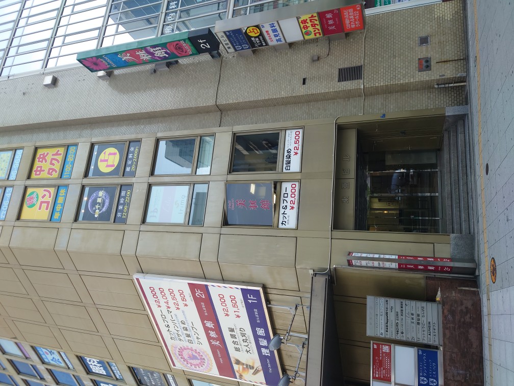 地下鉄御堂筋線なんば駅18番出口上がってすぐのとなりの建物。1Fに『理髪館』2Fに『美粧館』が入っている東亜ビルの5Fです。