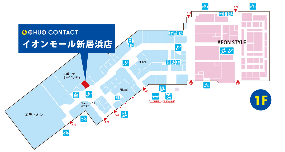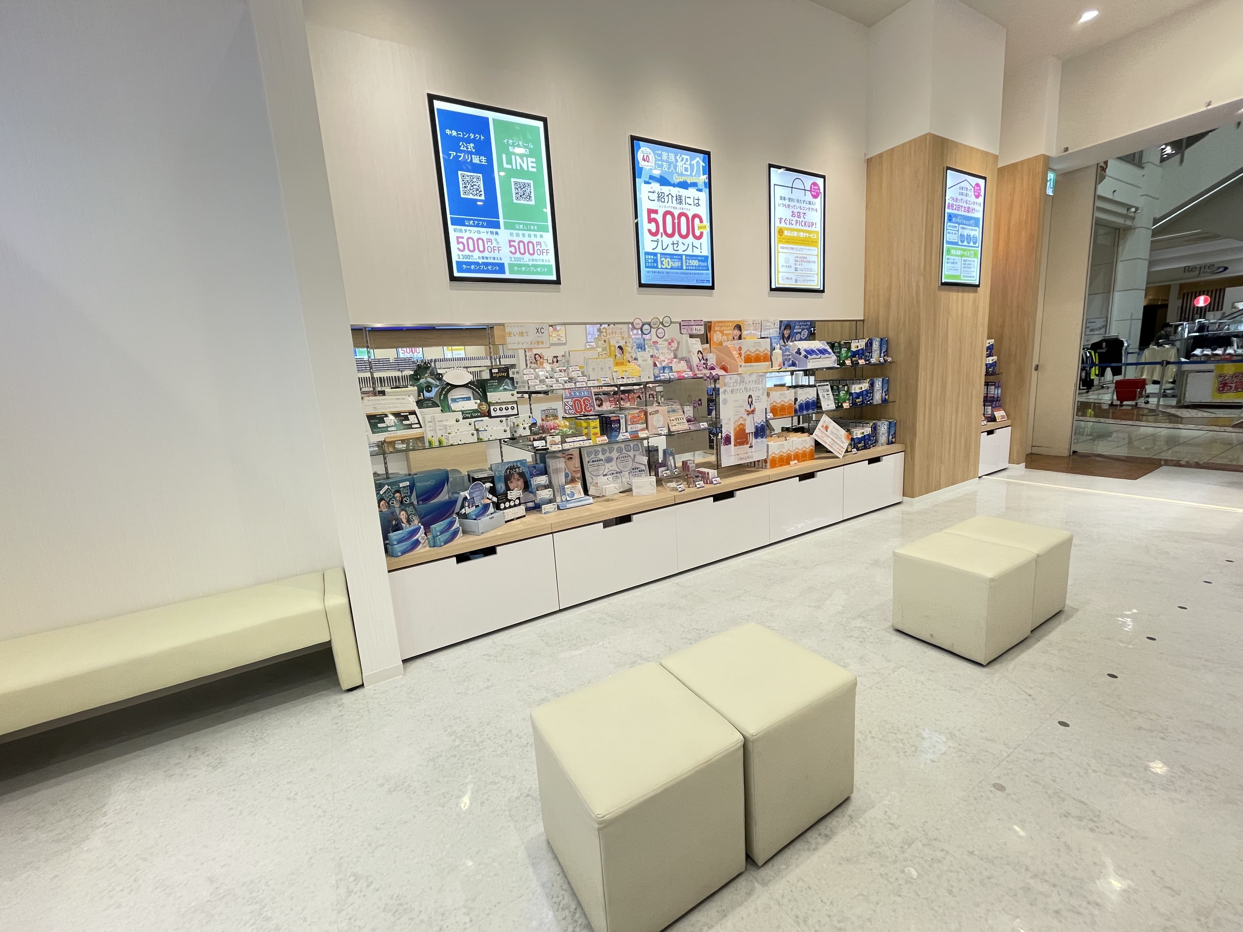 当店は、イオンモール新居浜店の中にございます。当施設内には、スーパーや、スターバックス様、TOHOシネマズ様などの専門店があり、 お買い物や映画鑑賞のついでにコンタクトが購入頂けます。