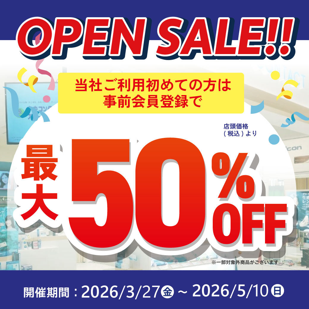 オープンを記念して、コンタクトがお得に買えるセールや、オープン抽選会をいたしますので、是非ご来店ください!