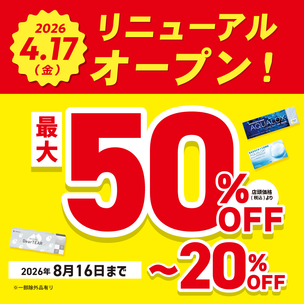 5/1(金)中央コンタクト イオンタウン四日市泊店がオープンいたします。 オープンを記念して特別なセールを行いますので、ぜひこの機会にご来店ください! 詳しいセール情報は店舗ページで随時更新いたします! 店舗ページはこち…