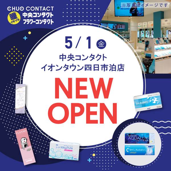 5/1(金)中央コンタクト イオンタウン四日市泊店がオープンいたします。 オープンを記念して特別なセールを行いますので、ぜひこの機会にご来店ください! 詳しいセール情報は店舗ページで随時更新いたします! 店舗ページはこち…