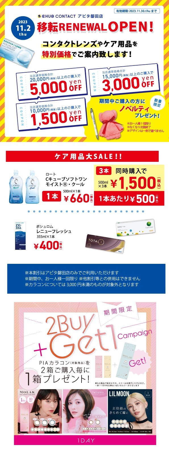 11/2(木)アピタ磐田1階に中央コンタクトがリニューアルオープン致しました!
