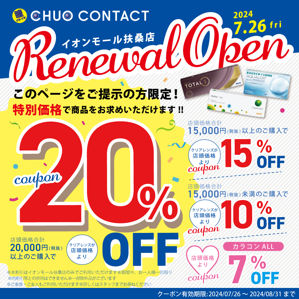 7/26(金)よりリニューアルオープンを記念してリニューアルセールも開催いたします!是非この機会にお越しください!