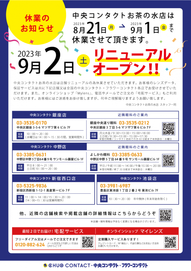 • 8/21(月)~9/1(金)お茶の水店リニューアルの為、休業のお知らせ