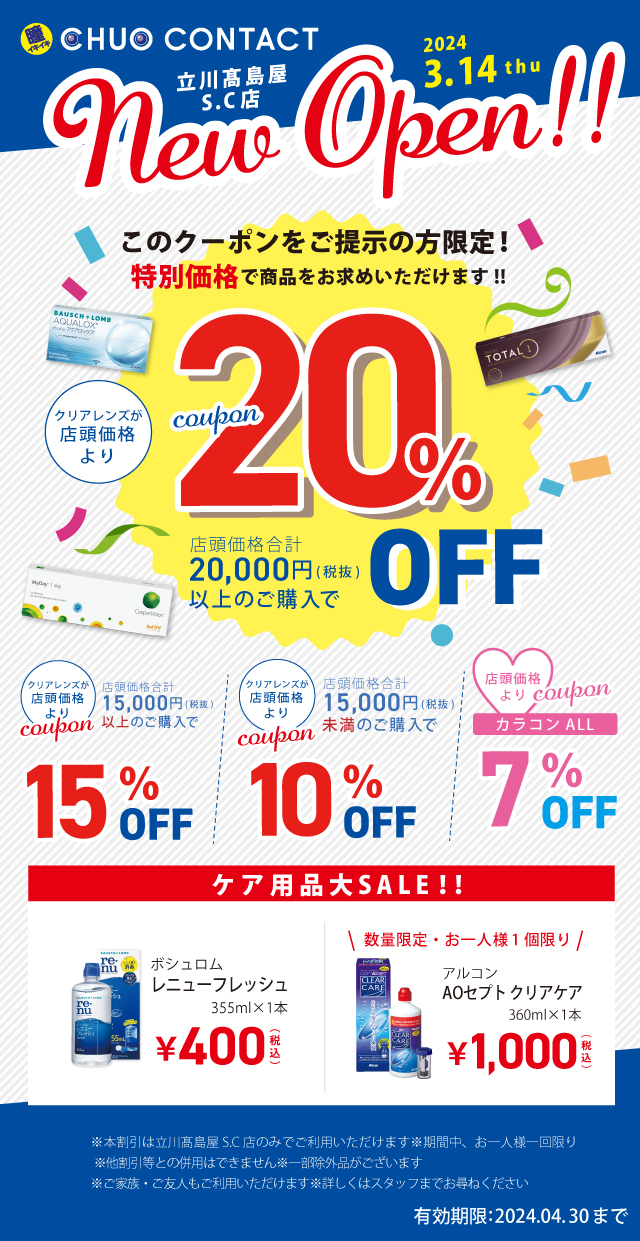 中央コンタクト立川高島屋S.C.店がオープン致しました!